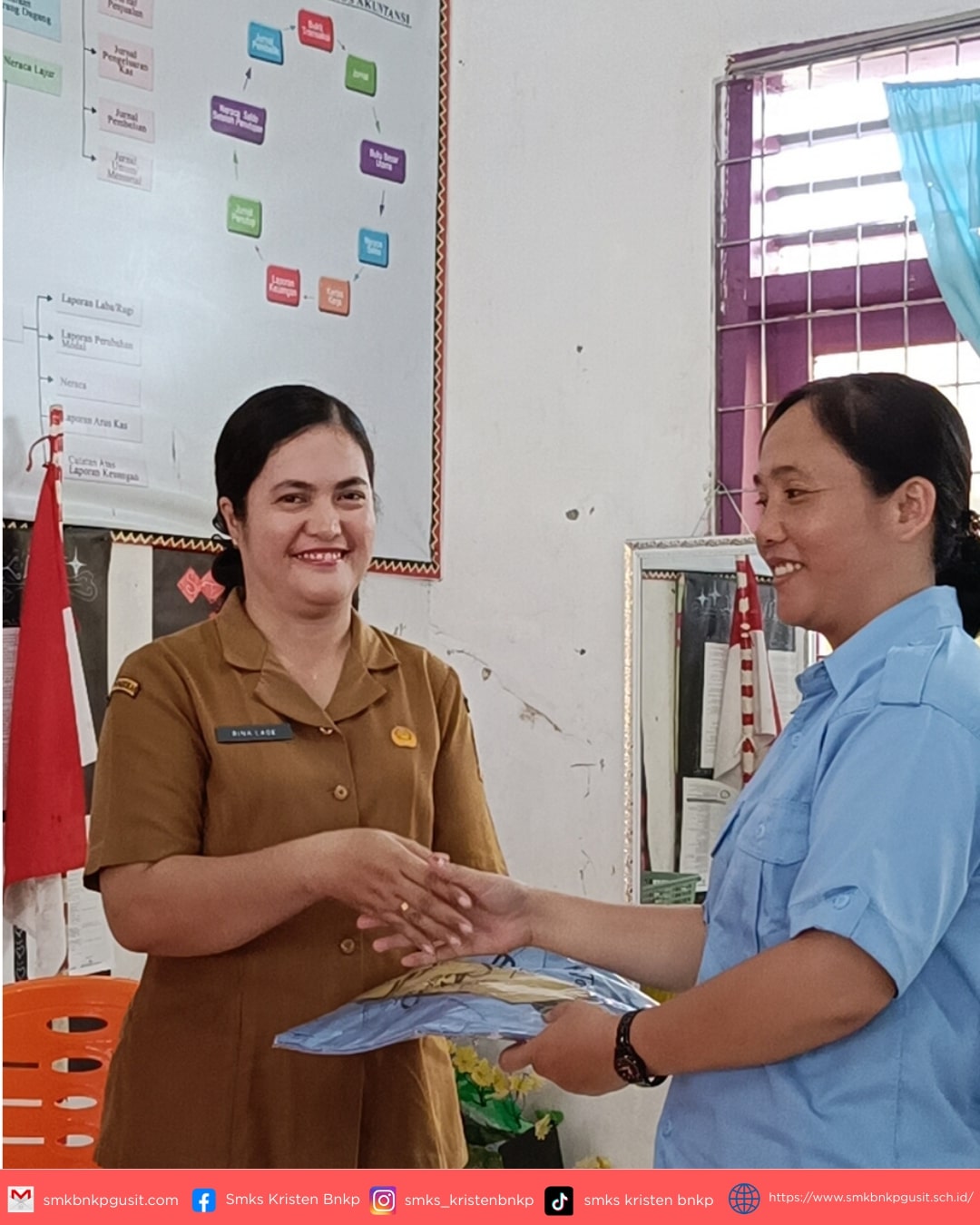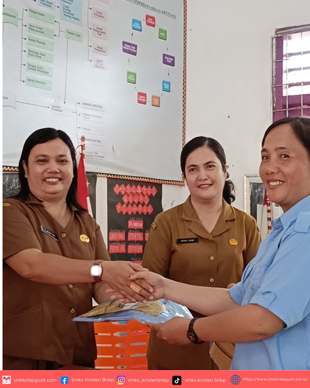 Kegiatan ini diakhiri dengan pemberian cenderamata dan sesi foto bersama sebagai kenang-kenangan. Meskipun harus berpisah secara fisik, kenangan dan ikatan kekeluargaan yang terjalin selama ini akan tetap abadi di hati seluruh keluarga besar SMK Swasta Kristen BNKP Gunungsitoli.
